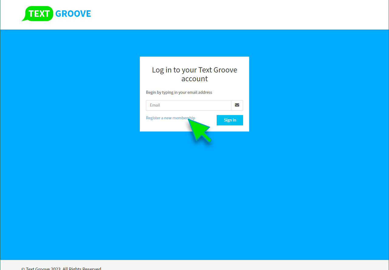 If you do not have an account setup with Text Groove, you can click the “Register a New Membership” link below the text box on the main sign in page. You will need to contact your Admin on the account to set your user permissions, or contact us directly to help setup -