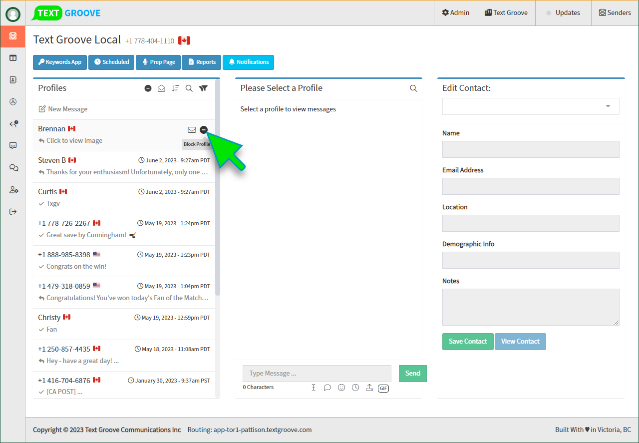 There may be a time when a contact needs to be blocked. When a contact is blocked, they are removed from the main sender window and placed into a separate "quarantine" window.